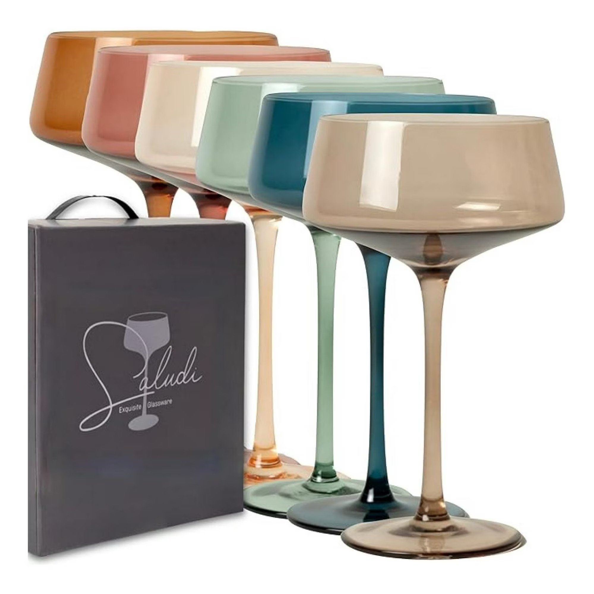 Do y’all have a favorite glassware? I love, love a coupe glass. I’m mildly convinced that a stunning piece of glassware can actually make your cocktail taste better. And the coupe glass is exactly why I feel that way. With this sleek set of Multi-Color Stemmed Coupe Glasses, each comes in a bold, fully saturated color, so everyone can spot their drink.. Hand-blown and lead-free, these bold beauties are as durable as they are show-stopping.